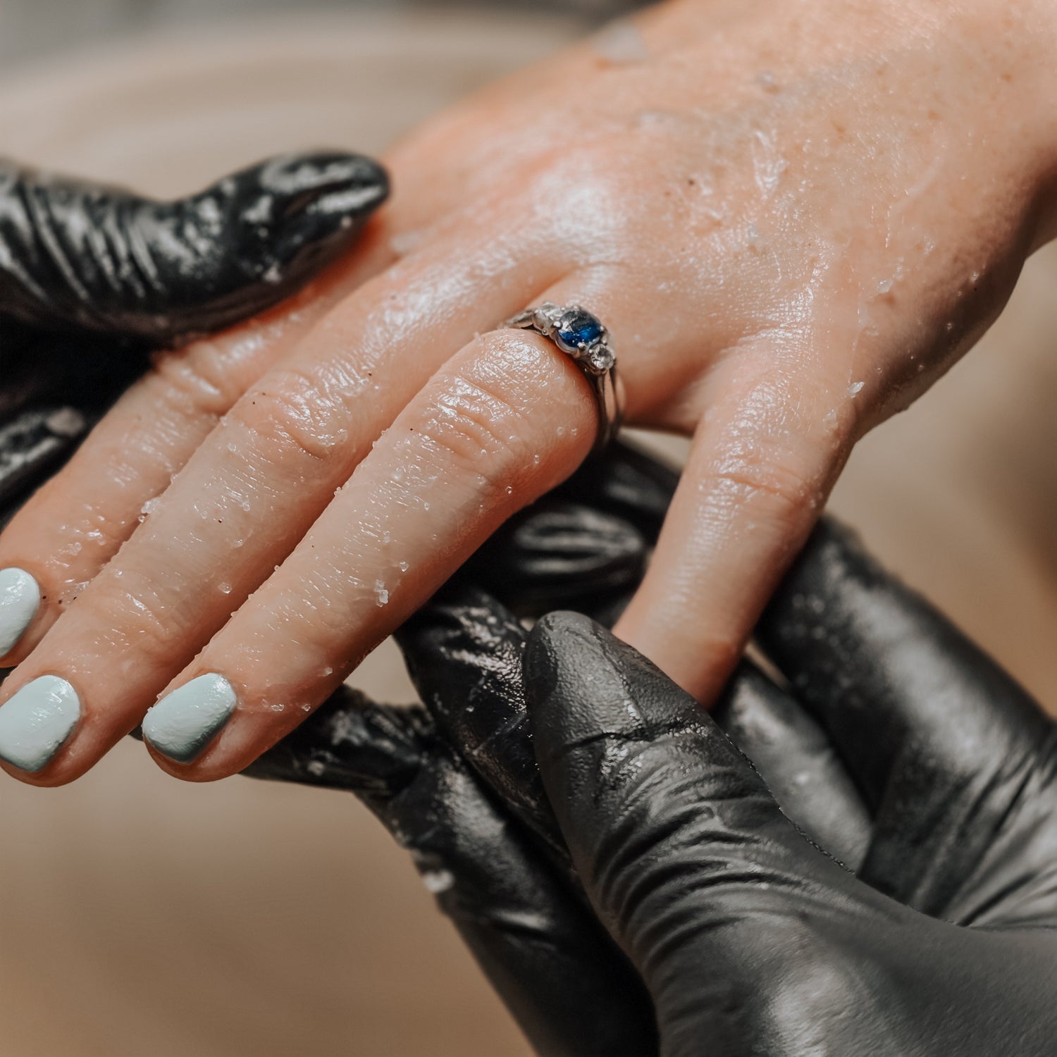 Every treatment is completed with a cleansing handscrub, using a relaxing and refreshing mineral scrub your hands with be bathed in warm water, scrubbed and finished with our recommend cutical oils.